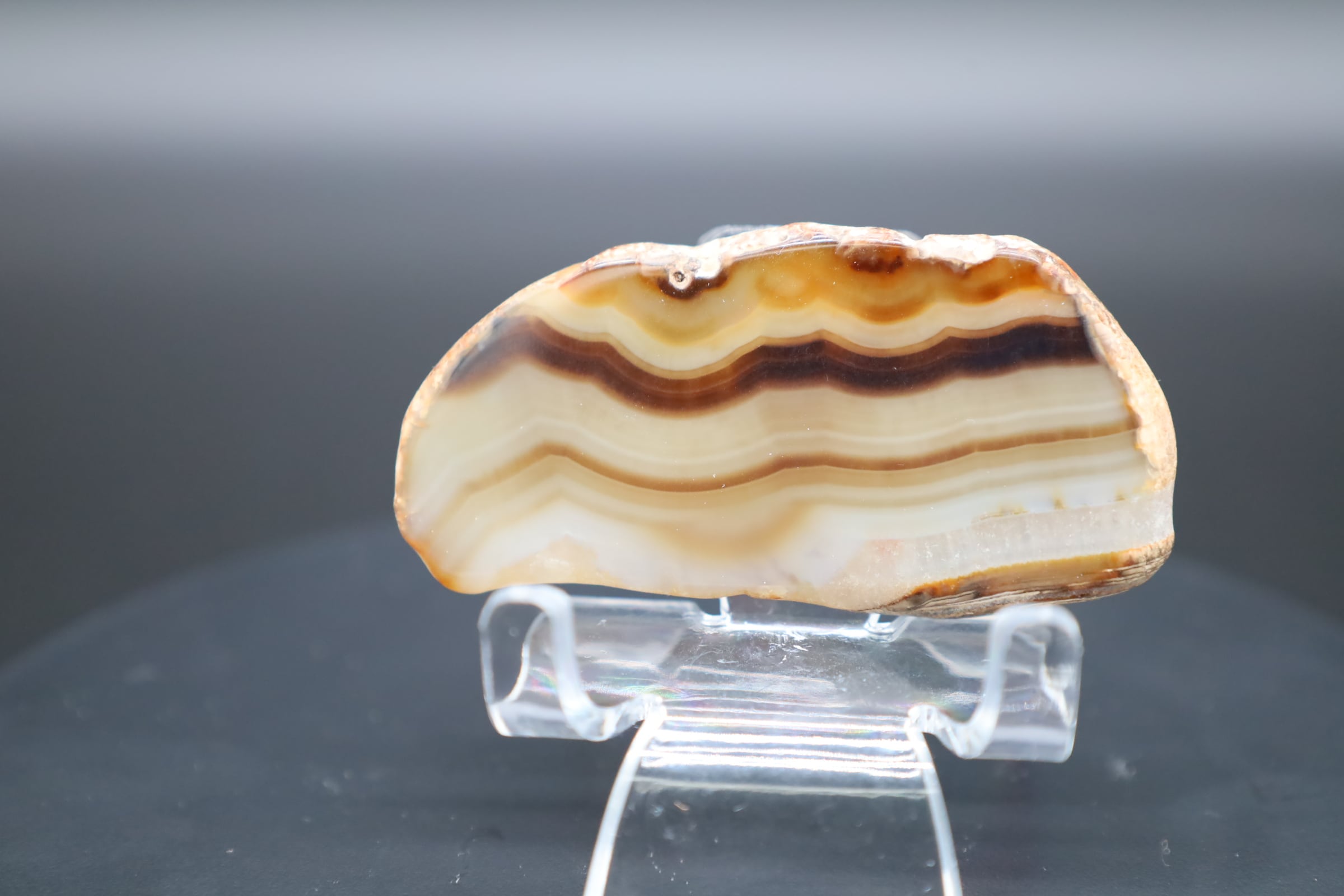 ブルーレースアゲートと同質のアゲートが、形成後の地熱等により色が変化したものとされています。