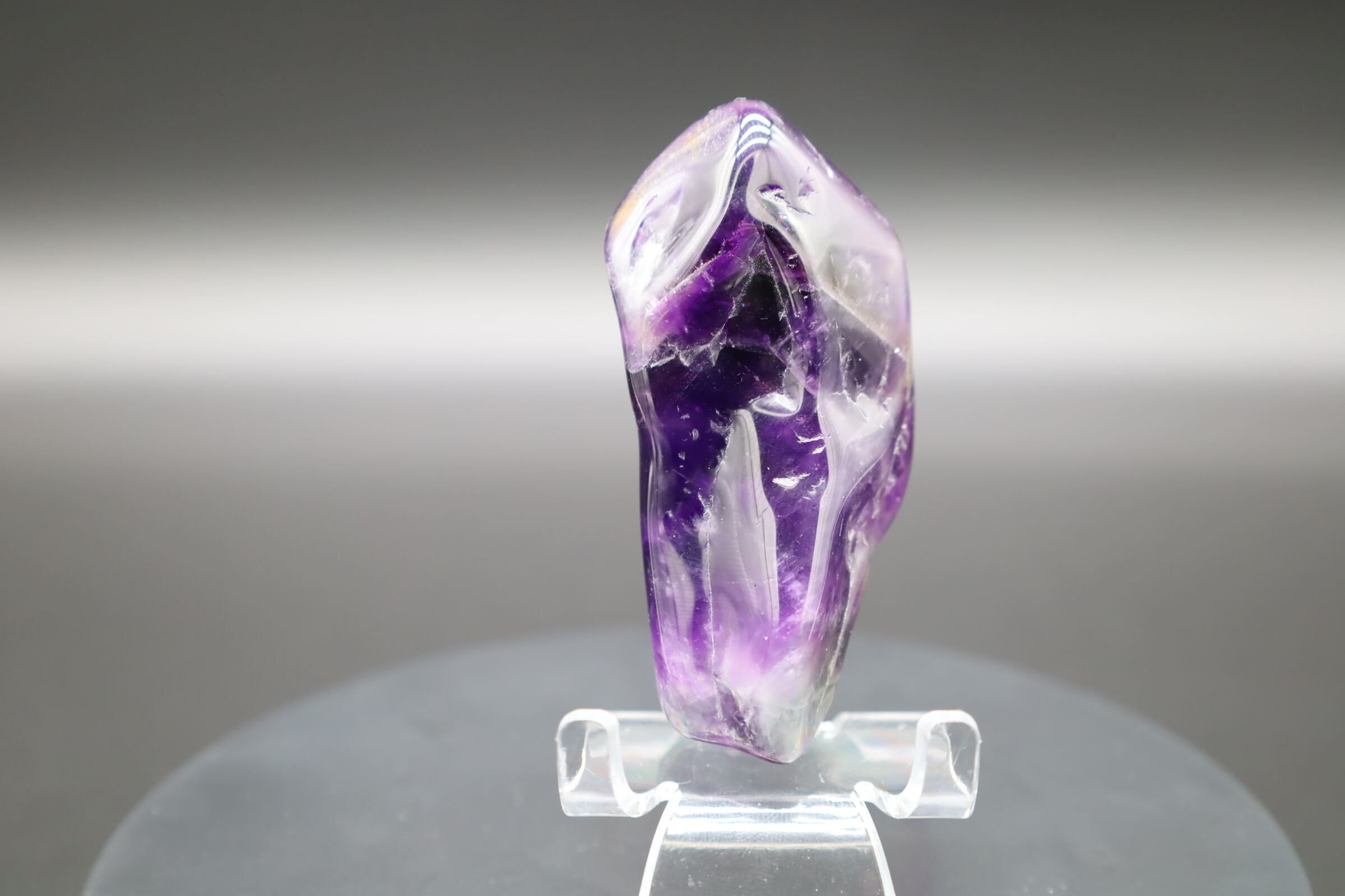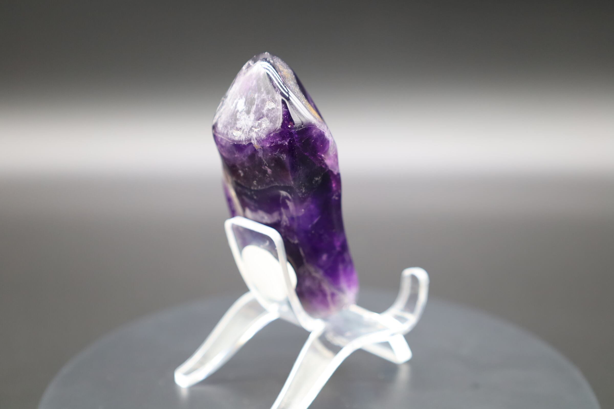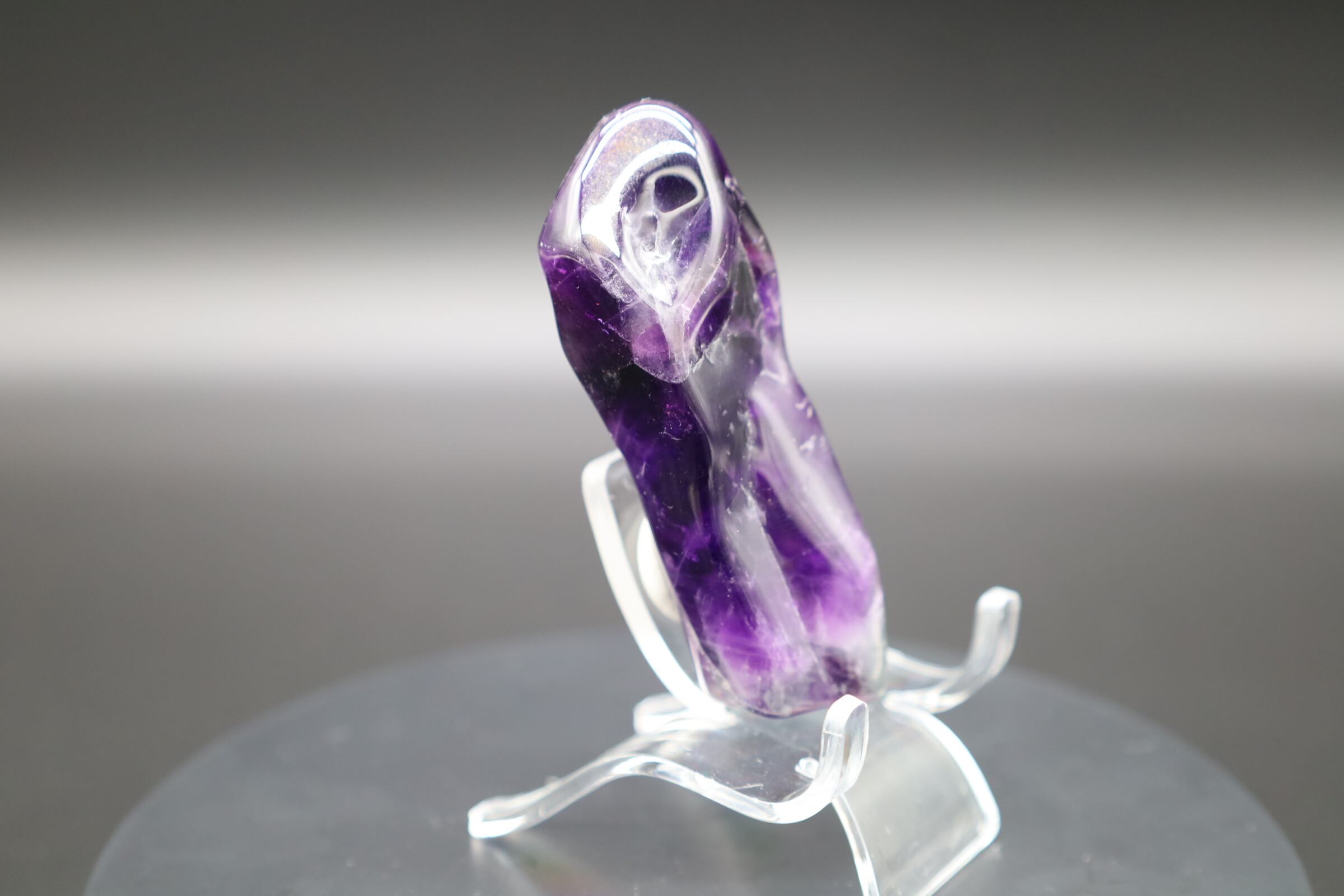 アメジストの大きめ単結晶をジオードから切り離し研磨したものです。濃厚紫色です!