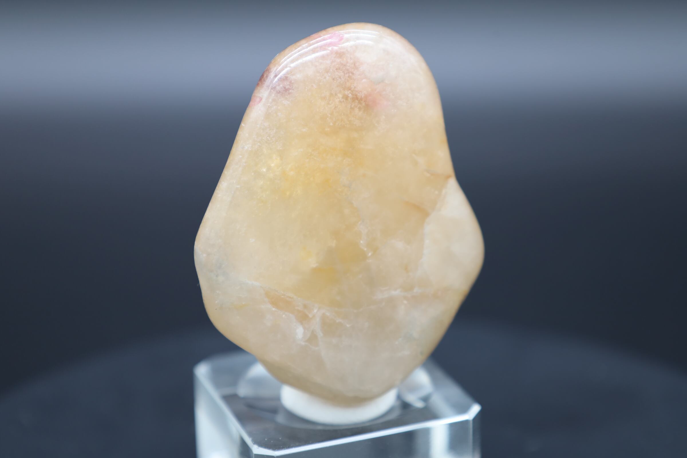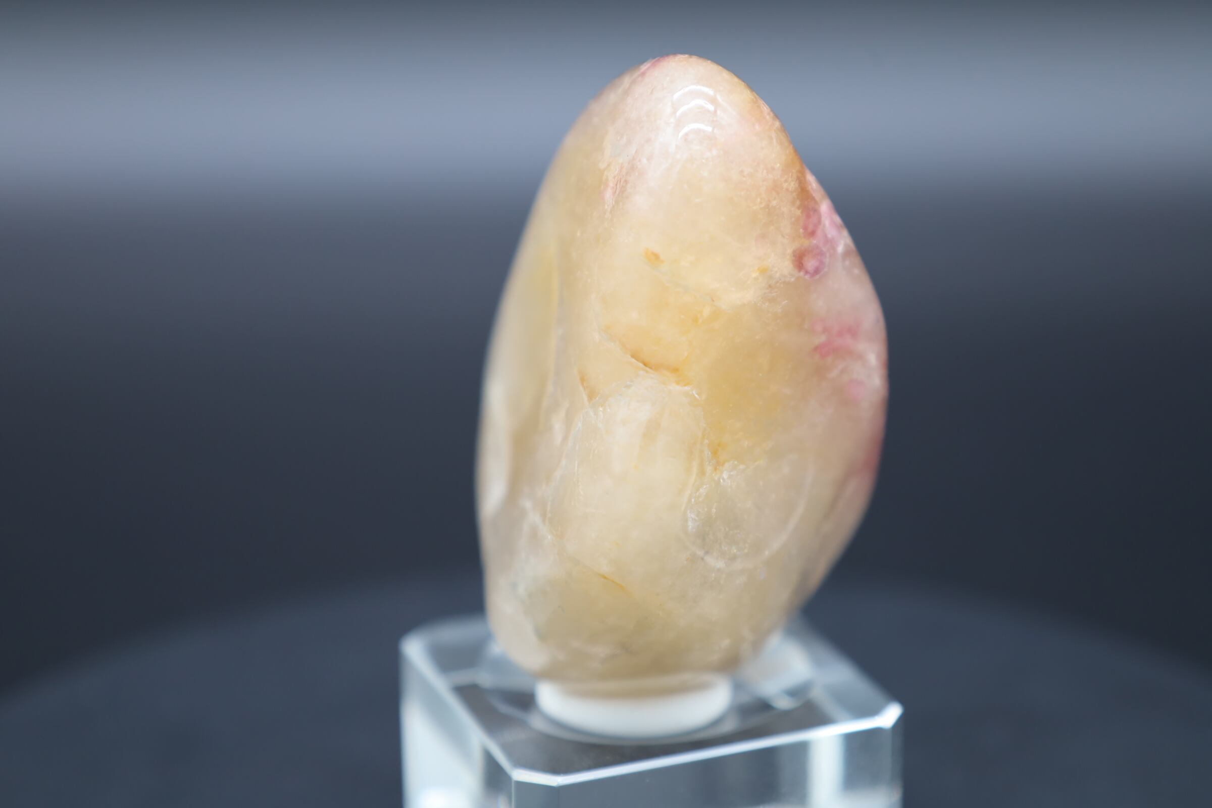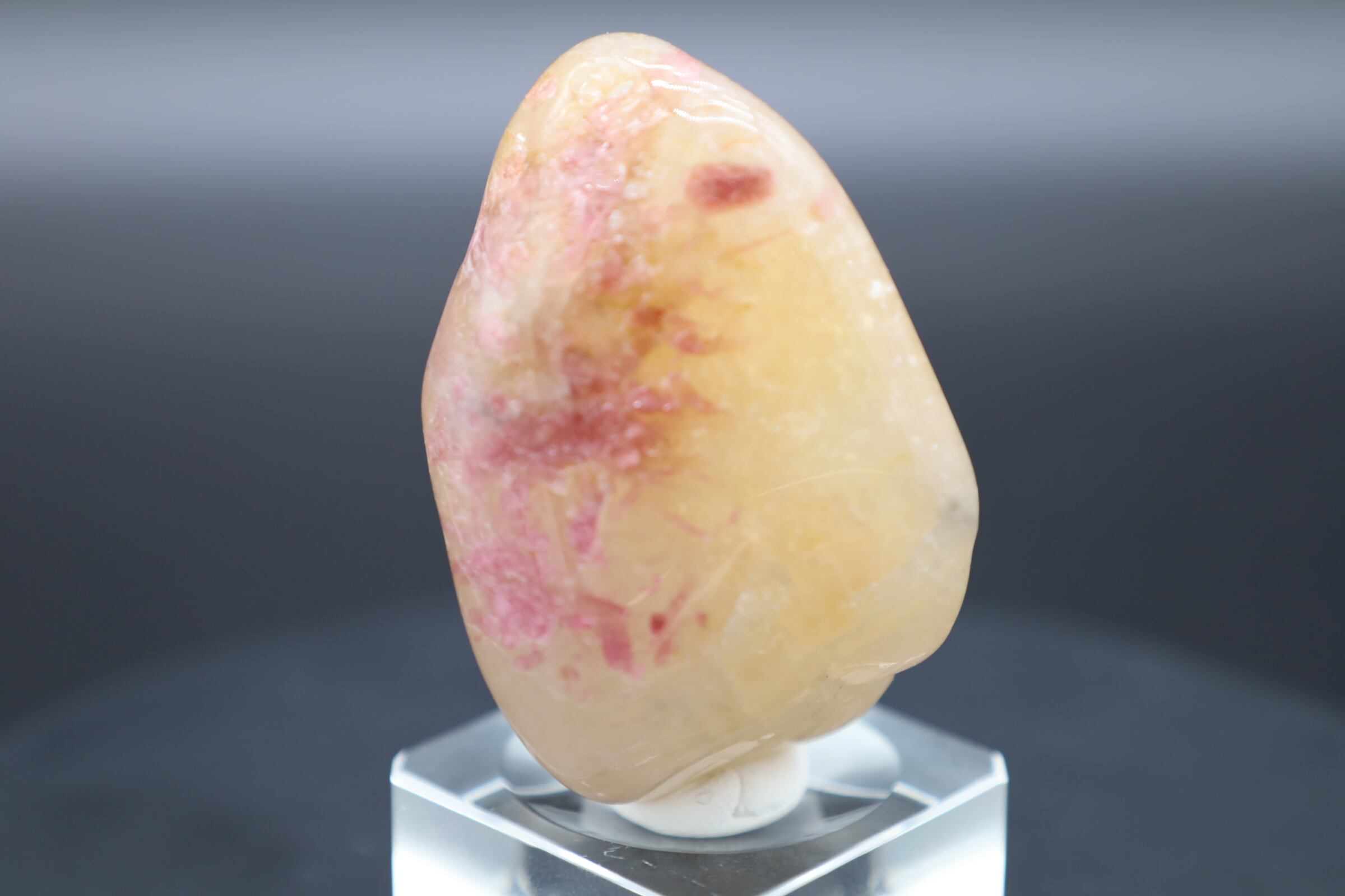 シトリンの中に紅ショウガのようなピンクトルマリンが入った、可愛いツートーンのタンブルです。
