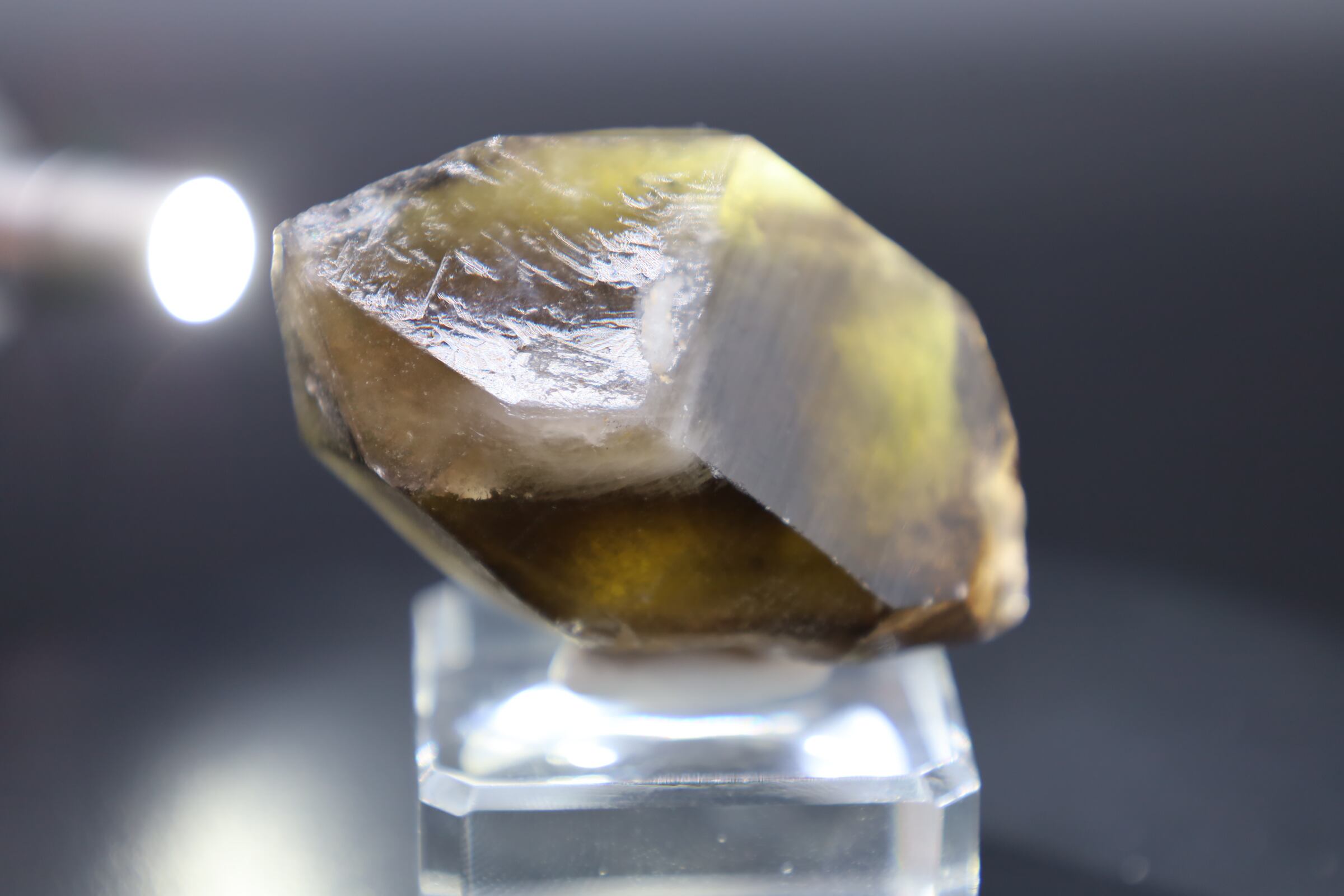 表面のてりの良さもさることながら、透過光がシトリンカラーの黄色寄りのスモーキーになっています。