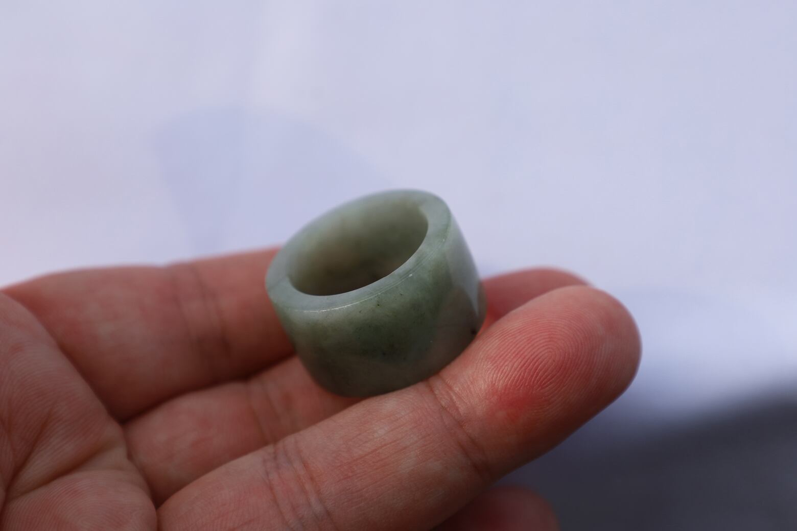 ミャンマー産の翡翠リングです。渋みのある緑色をしており、透明感もあります。