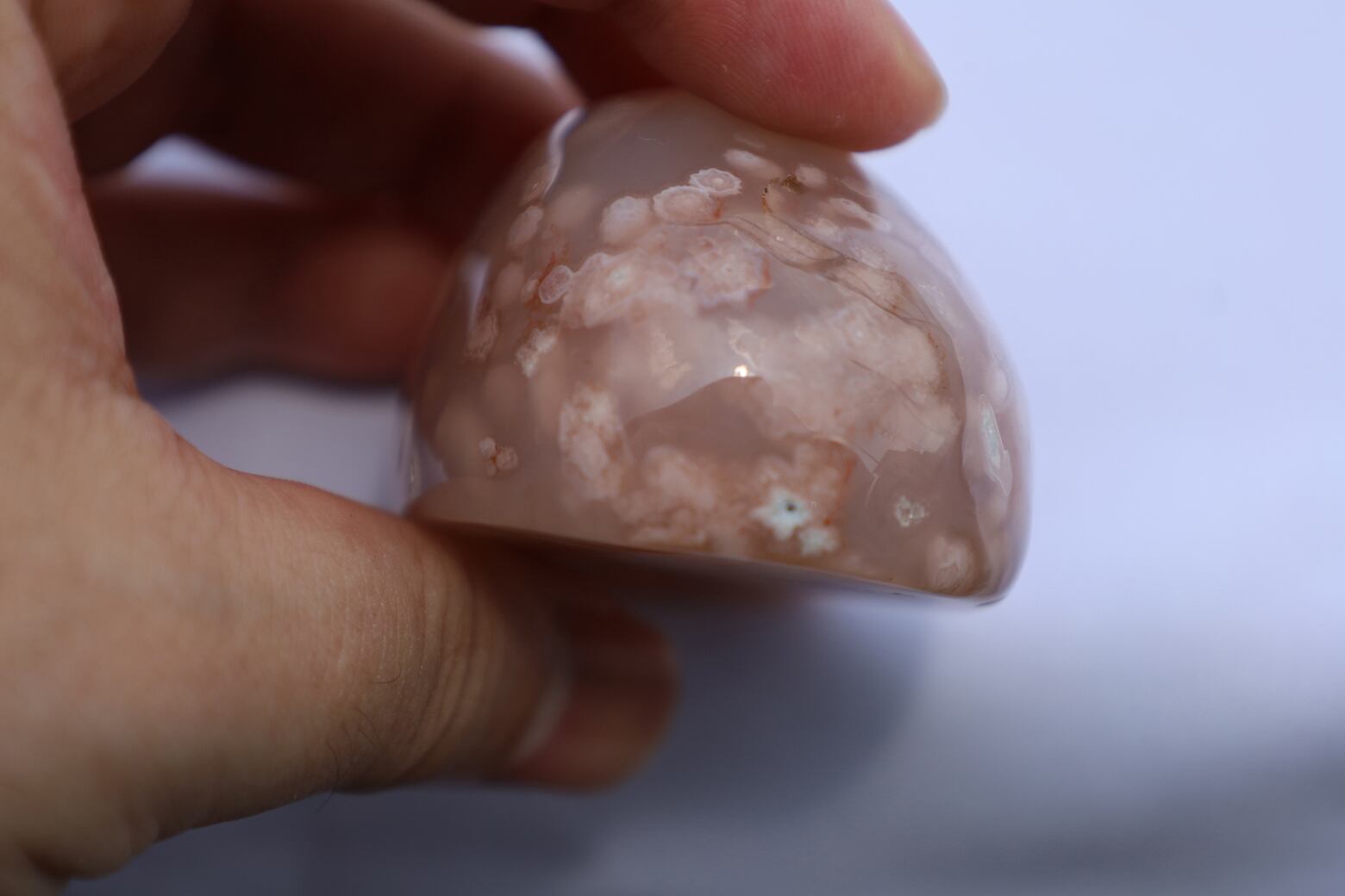 ゼリー状の半透明に細かい桜の花びらが舞っているような、桜瑪瑙です。