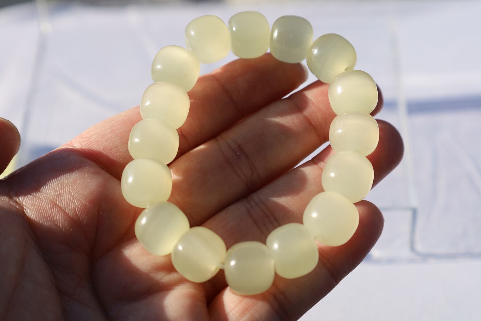 とてもきれいなキャッツアイのでるサーペンティンブレスレットです。中国では玉の1つとして親しまれています